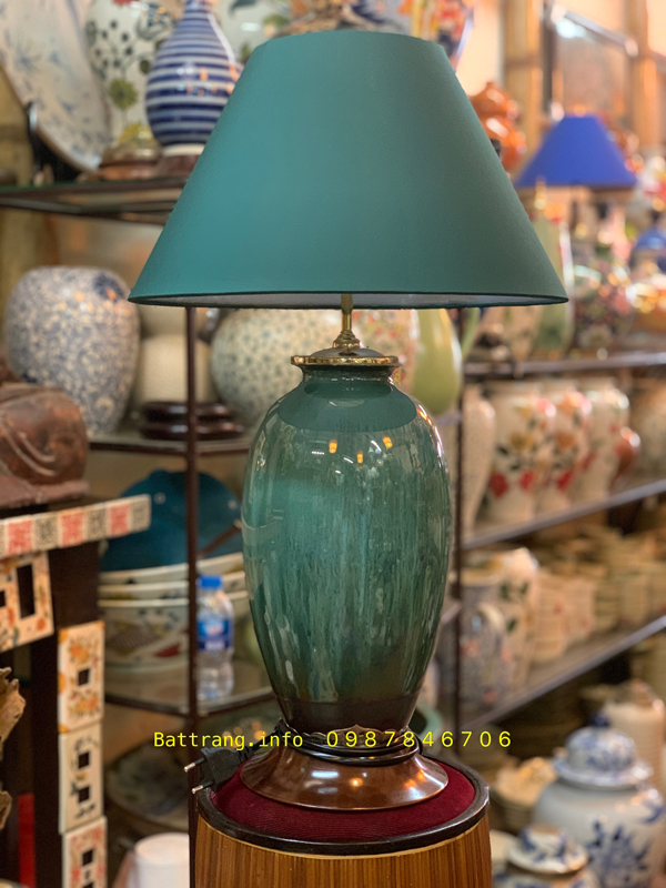 Đèn chân cao men lục bảo ngọc