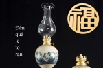 Đèn dầu chân đồng men rong khử vẽ vàng 18k - đèn dầu vẽ sen