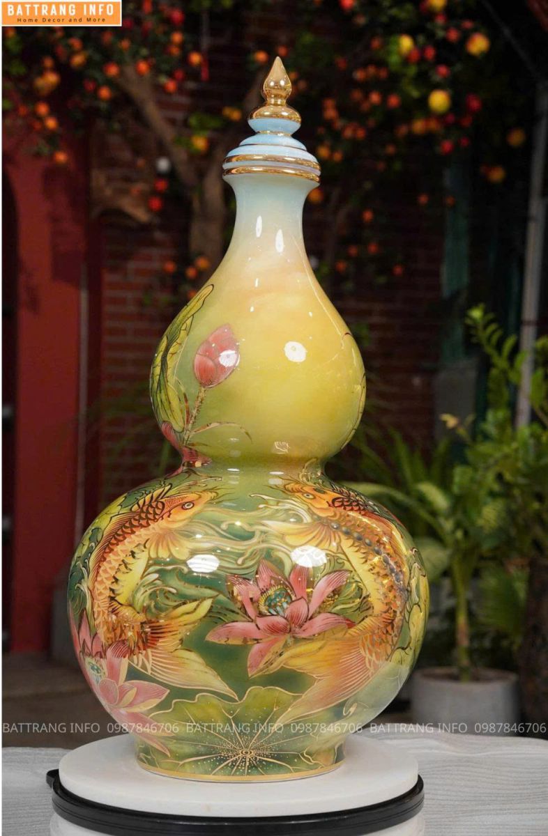 Giới thiệu Hồ Lô Sen Cá Bát Tràng vẽ vàng 24K