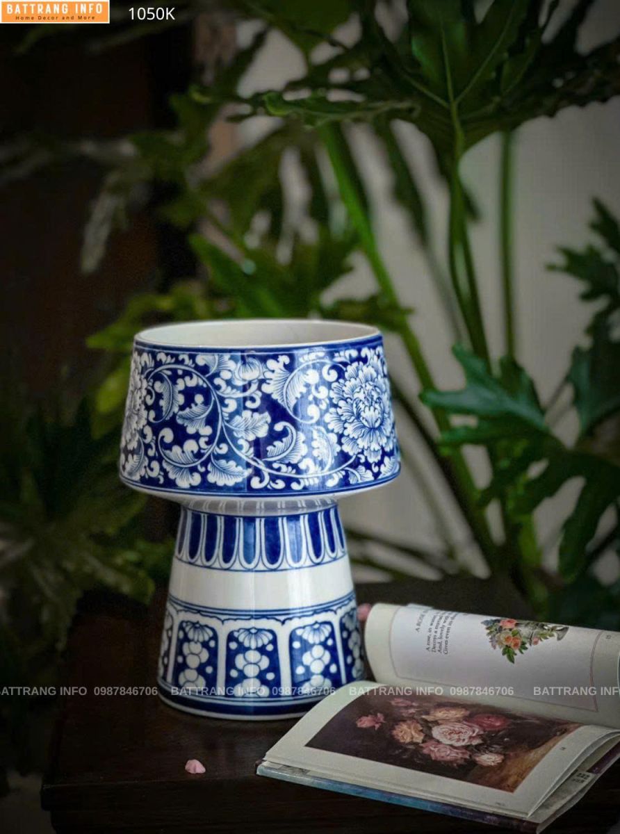 Lọ Hoa Dáng Ly Cao 25cm Miệng 16cm Vẽ Tay Men Lam Cao Cấp Bát Tràng