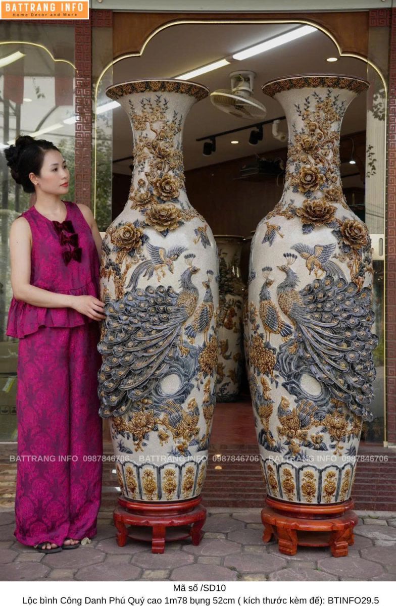 Lộc Bình Công Danh Phú Quý Men Rạn Đắp Nổi Cao 1m78 Bụng 52cm – Đỉnh Cao Nghệ Thuật Gốm Bát Tràng
