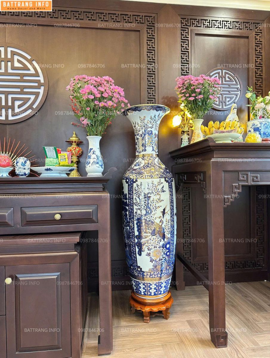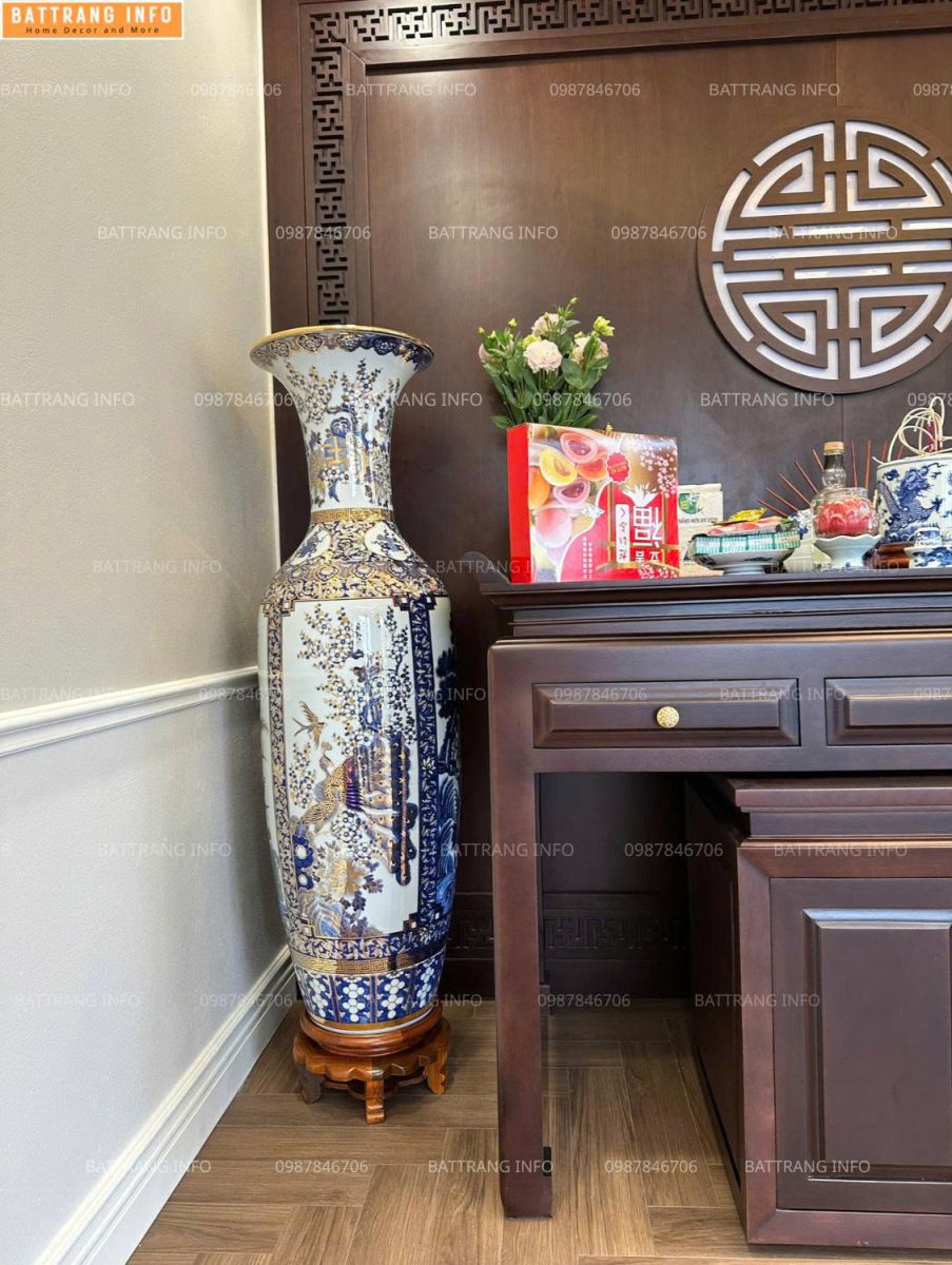 Lộc Bình Tứ Cảnh Khử Cao Cấp Bát Tràng Vẽ Vàng Cao 1m6 Cả Đế – Tuyệt Tác Phong Thủy Tại Tư Gia