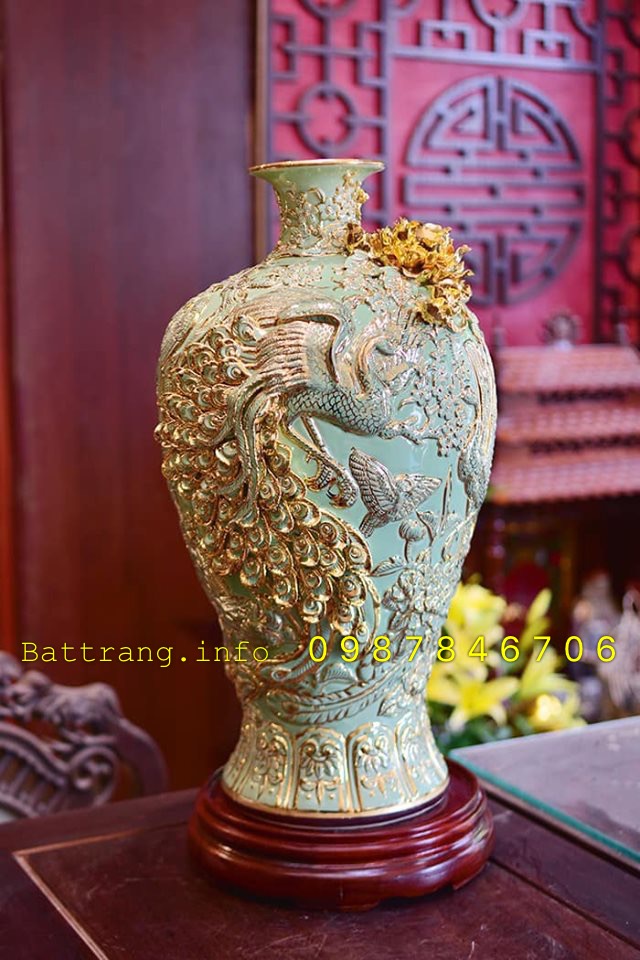 Mai bình đắp nổi kênh bong màu xanh ngọc rát vàng 18k cho gia chủ mệnh Mộc