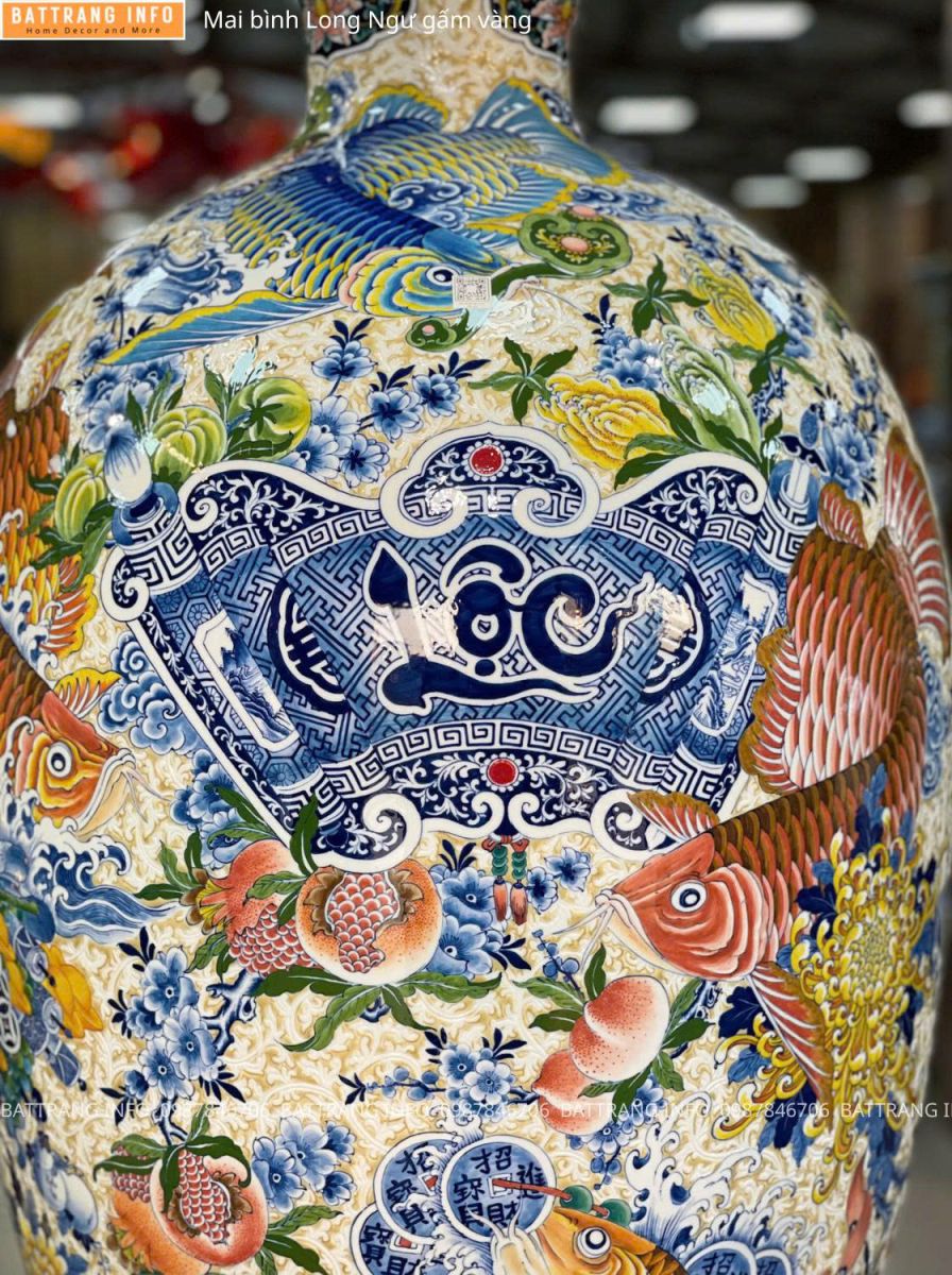 Mai bình Long Ngư gấm vàng không chỉ là sản phẩm gốm sứ Bát Tràng cao cấp mà còn là biểu tượng của tài lộc – phú quý – thịnh vượng. Đây là lựa chọn lý tưởng cho không gian sang trọng hoặc làm món quà biếu tặng mang ý nghĩa sâu sắc