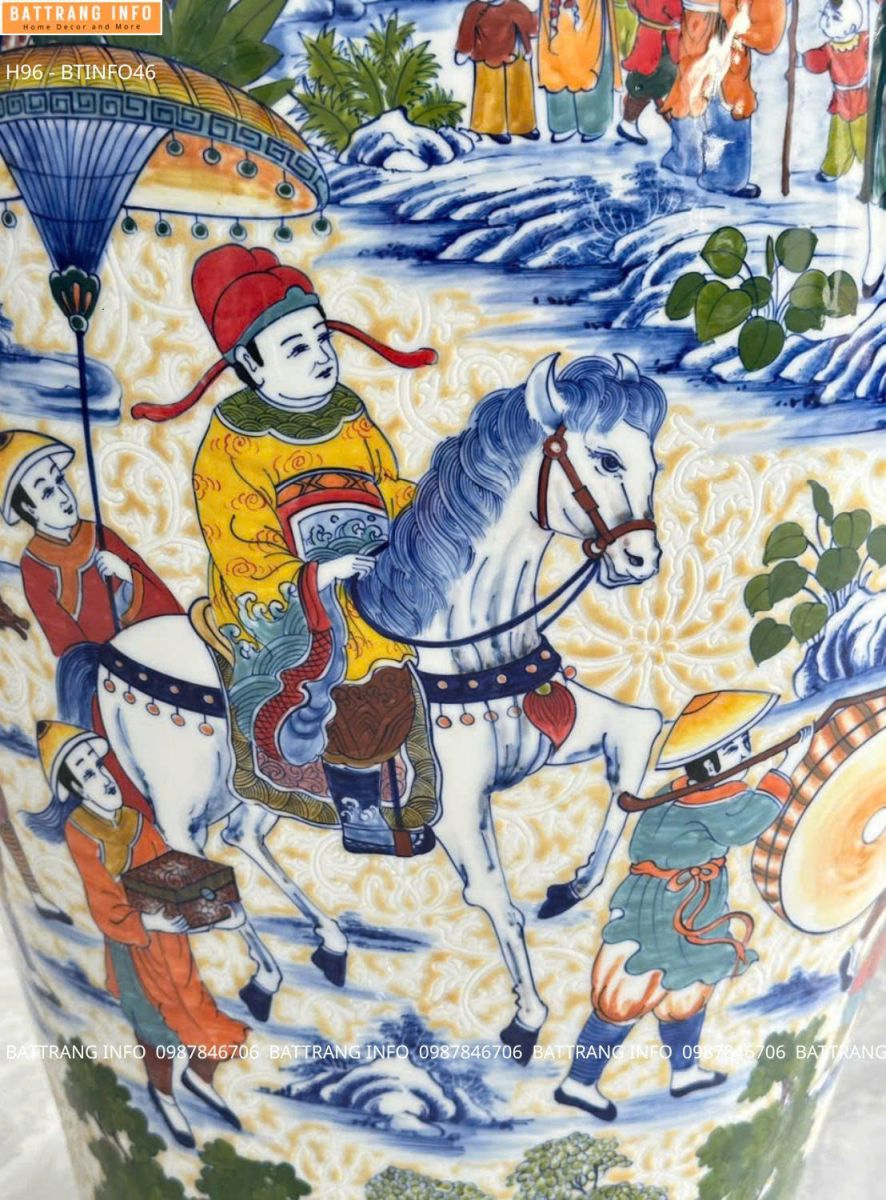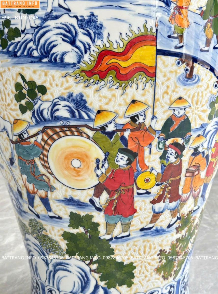 Mai bình tích lộc gấm Vinh Quy Bái Tổ cao 96cm là dòng sản phẩm gốm sứ cao cấp mang đậm giá trị nghệ thuật và ý nghĩa phong thủy sâu sắc. Đây không chỉ là vật phẩm trang trí sang trọng mà còn là biểu tượng của thành công, danh vọng và sự thịnh vượng trong cuộc sống.