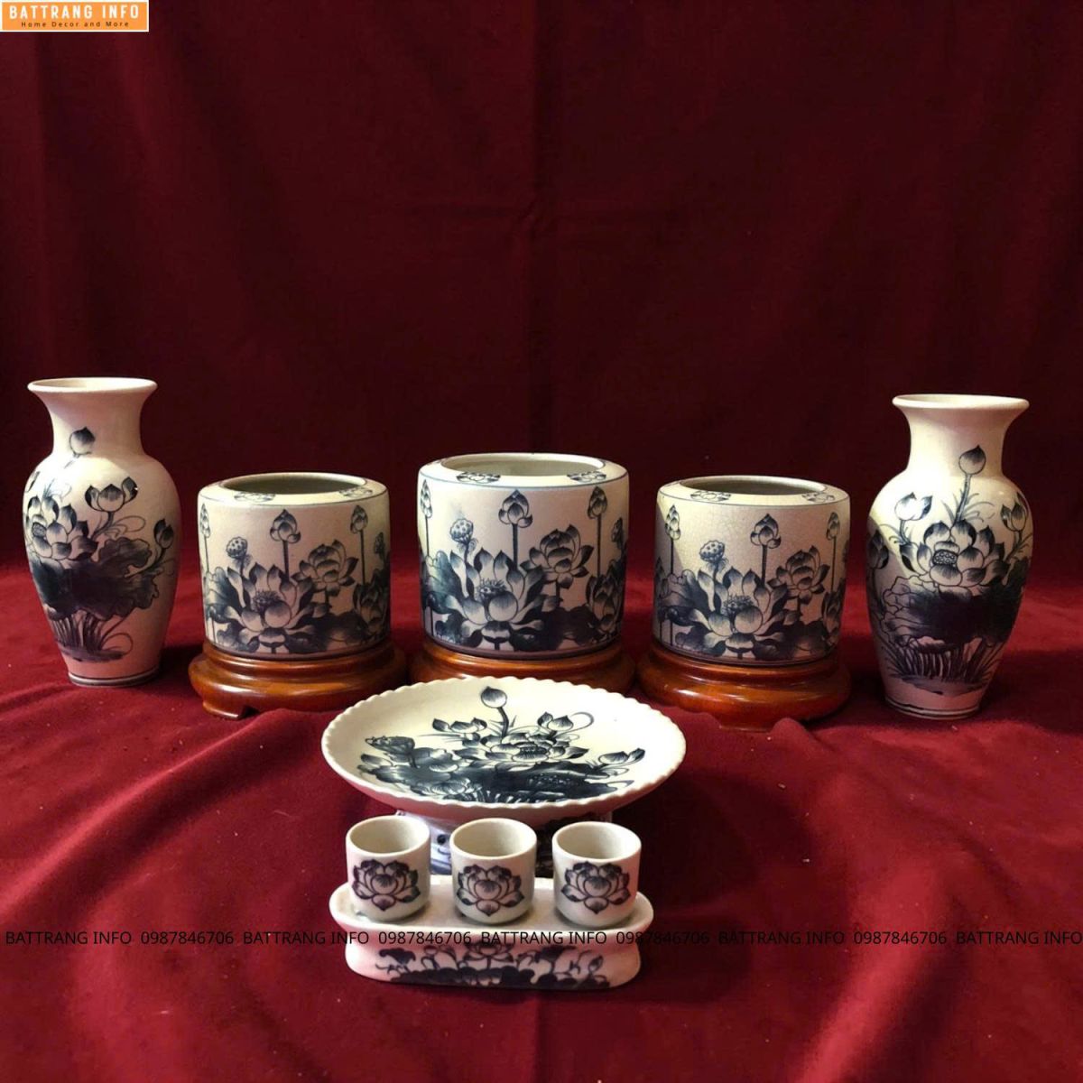 Bộ Đồ Thờ Men Rạn Vẽ Tay Họa Tiết Hoa Sen Cao Cấp Bát Tràng – Tinh Hoa Gốm Sứ Tâm Linh