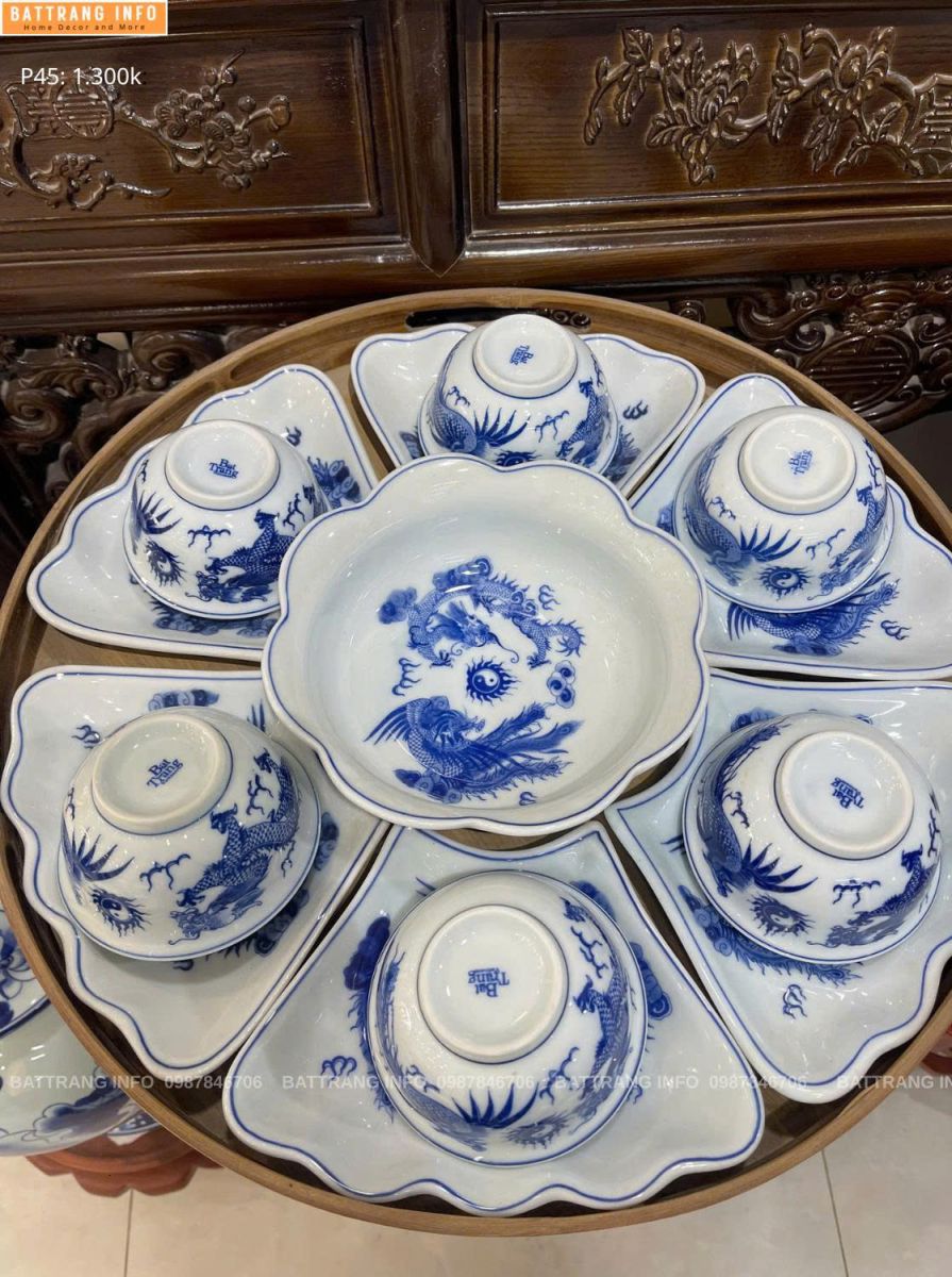 Sét bát đĩa cúng hoa mặt trời P45 men lam rồng vẽ tay cao cấp Bát Tràng không chỉ là bộ đồ thờ, mà còn là sự kết tinh của tinh hoa gốm Việt, mang đến sự trang nghiêm, linh thiêng và bền vững theo thời gian cho mỗi gia đình.