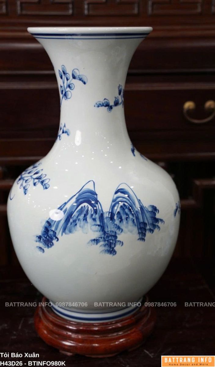 Tỏi Báo Xuân Men Lam Vẽ Tay Cao 43cm Cao Cấp Bát Tràng