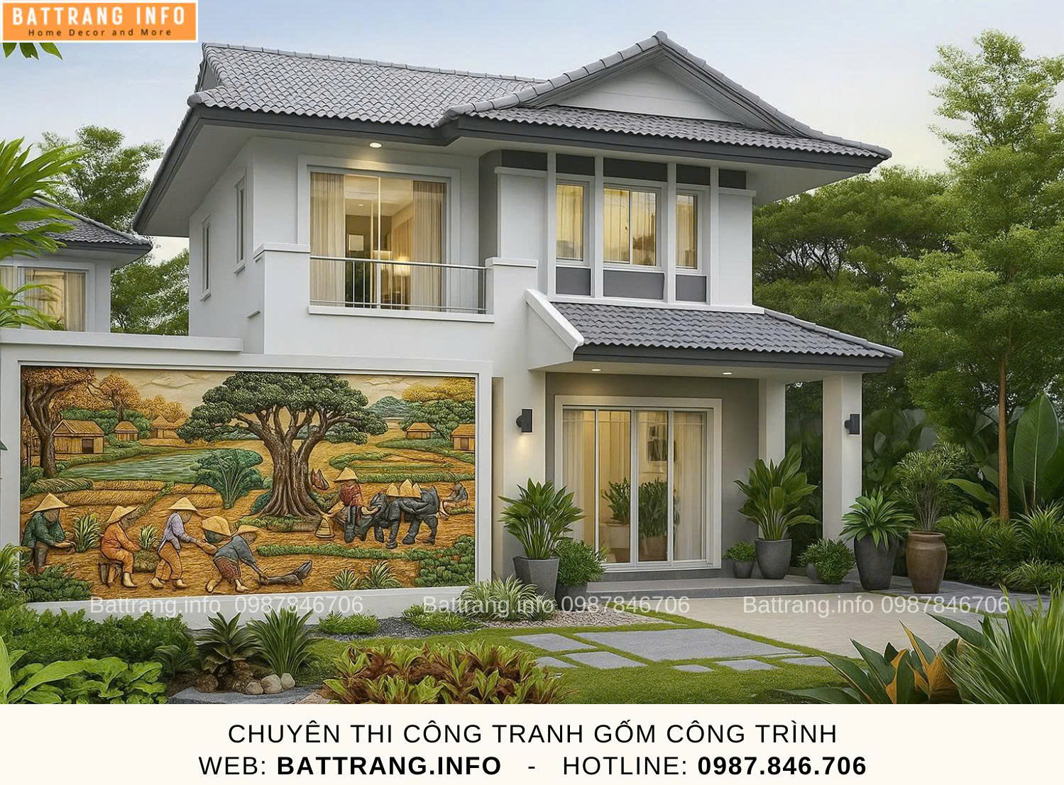 • Cổng vòm hoặc vách trang trí biệt thự, resort Mỗi bức tranh mang lại cảm giác ấm cúng, gần gũi với thiên nhiên và thể hiện gu thẩm mỹ riêng của gia chủ.