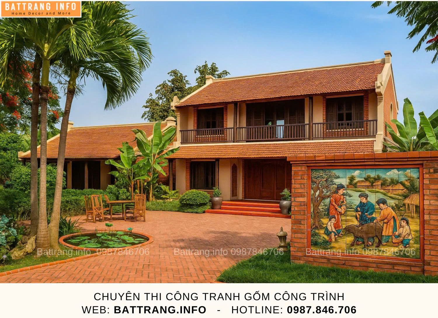 Làng gốm Bát Tràng - với lịch sử hơn 500 năm phát triển, là cái nôi của những sản phẩm gốm sứ thủ công tinh xảo, nổi tiếng cả trong và ngoài nước. Gốm Bát Tràng được nung ở nhiệt độ cao, có độ bền vượt trội, chịu được thời tiết khắc nghiệt – đặc biệt phù hợp với tranh gốm ghép mảnh trang trí sân vườn.