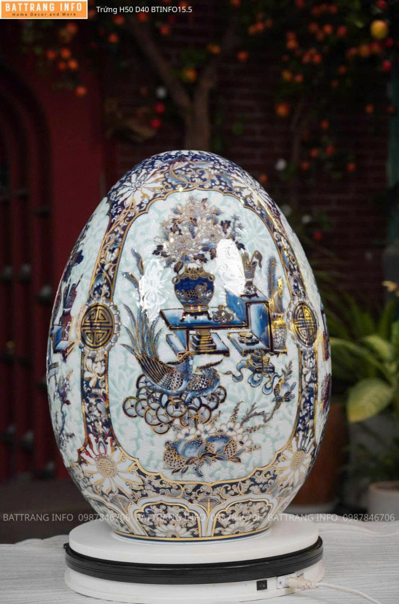 👉 Trứng phong thuỷ Tứ Quý cổ đồ men lam nền gấm vẽ vàng 24K cao 50cm là lựa chọn hoàn hảo cho không gian sống sang trọng và phong thuỷ thịnh vượng.